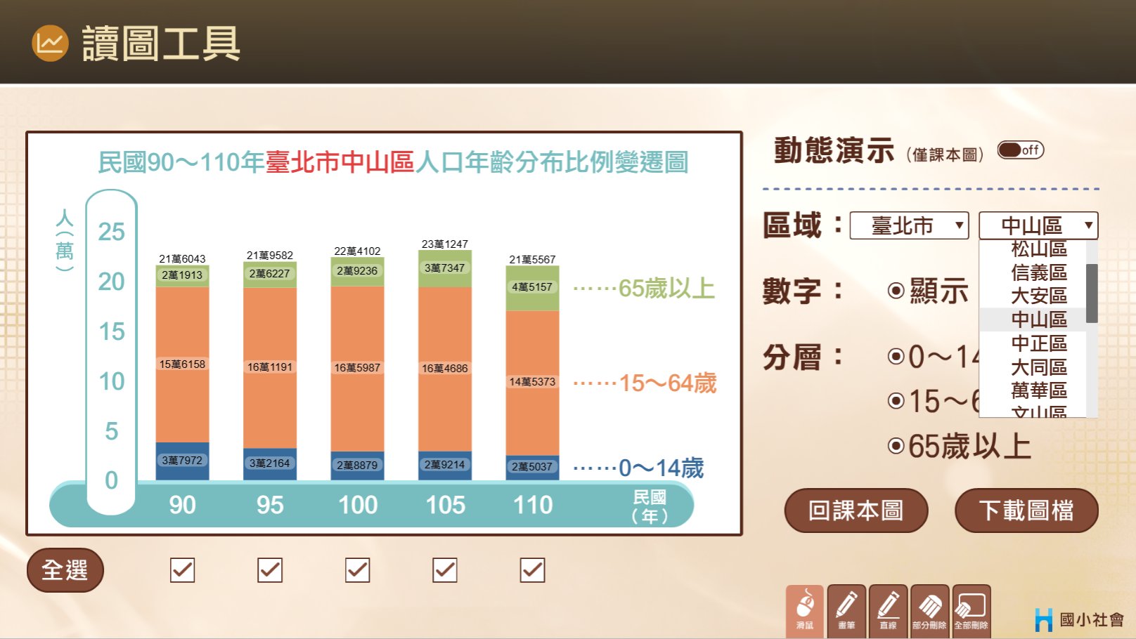 ✨ 全臺 368 鄉鎮任您選:不只教怎麼看圖,還能直接套用在地真實數據!一鍵切換全臺 368 個鄉鎮市區,圖表功能還能自由設定,讓「在地化教學」精準又到位。