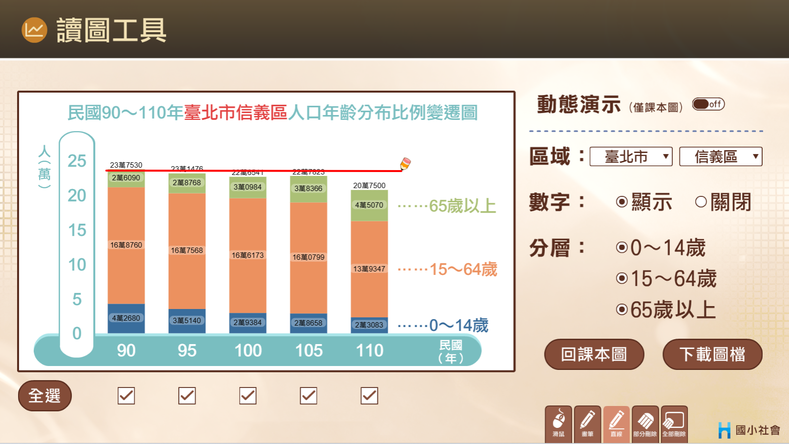教到「讀圖123」人口圖表時,學生總是看攏無?