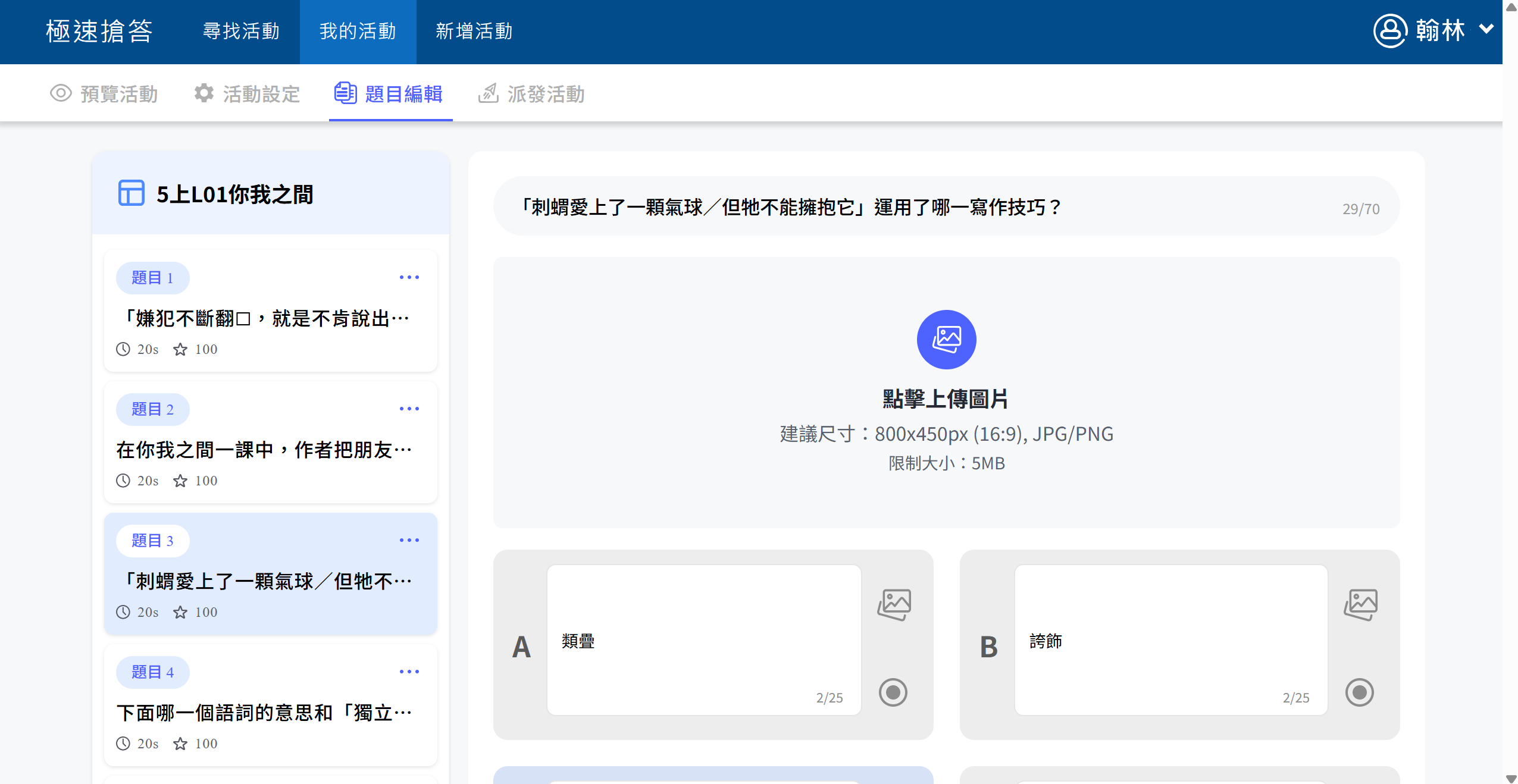 翰林全新課堂互動活動「極速搶答」功能操作介紹